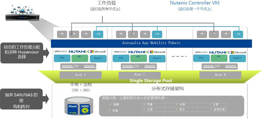 · 前期部署实施方便,一台硬件集成计算、网络、存储,无不同配件之间的连接线缆,全部通过虚拟化实现;